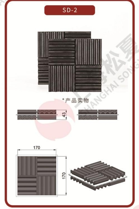 SD-2型橡胶减振垫采用优质橡胶为材料,有圆形四陷镂空、剪切瓦楞形。