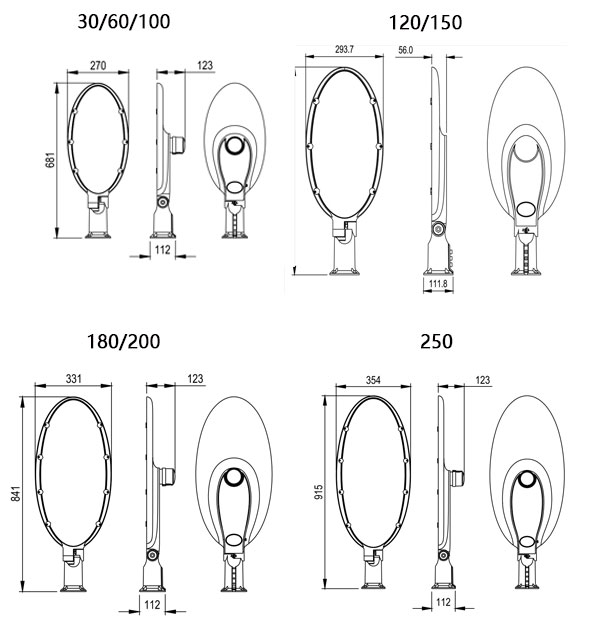 - 灯具功率(W) : 30/60/80/100/120/150/200/250WW