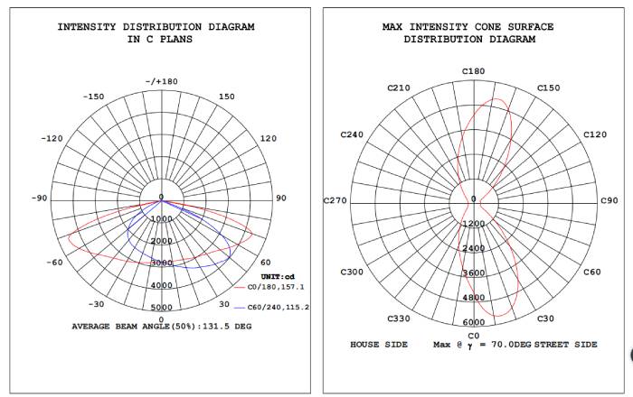 配光:蝙蝠翼+偏光透镜,专门为身定做的专利透镜,大幅改善照明效果,照度均匀度更好