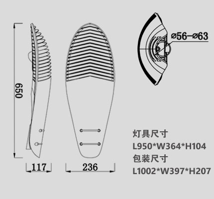 | 灯具尺寸(mm) | L650*W236*H117 |