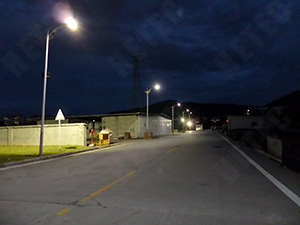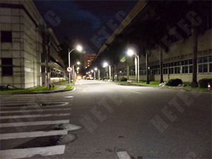 80W LED路灯代替原有250W高压钠灯,共计24盏,杆高6米,杆距20米,路面平均照度比原来用高压钠灯照度高出16 lx。