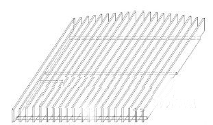 自然对流的散热强度不仅取决于流速、温差和流体物性,还取决于速度场和温度场的协同。从数值计算结果分析来看,为了提高散热器的散热能力,降低基板底面 最高温度可以有两种方法:(1)把散热器做得更大,散热器体积越大,其热容量越大,其散热面积也越大,还等同于降低了单位热流密度。但缺点是增加成本,浪 费金属材料;(2)通过改变空气扰流流场线,让速度场和温度场的协同性更好。把原有散热器模型加工成如图9所示,让空气在浮力的作用下可以在散热器中间实 现上下流通,扰流肋片,增大空气扰流面积。这样不仅可以破坏散热器上面的滞流区域,还增大了空气流通量,更充分冷却散热器。