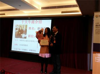 汉鼎LED照明:2016年3月10日深圳第七届牛商颁奖典礼圆满完成。汉鼎能源董事长谢芬芬女士表示很荣幸出席这次颁奖典礼,更感谢组委会颁给她这份荣誉。